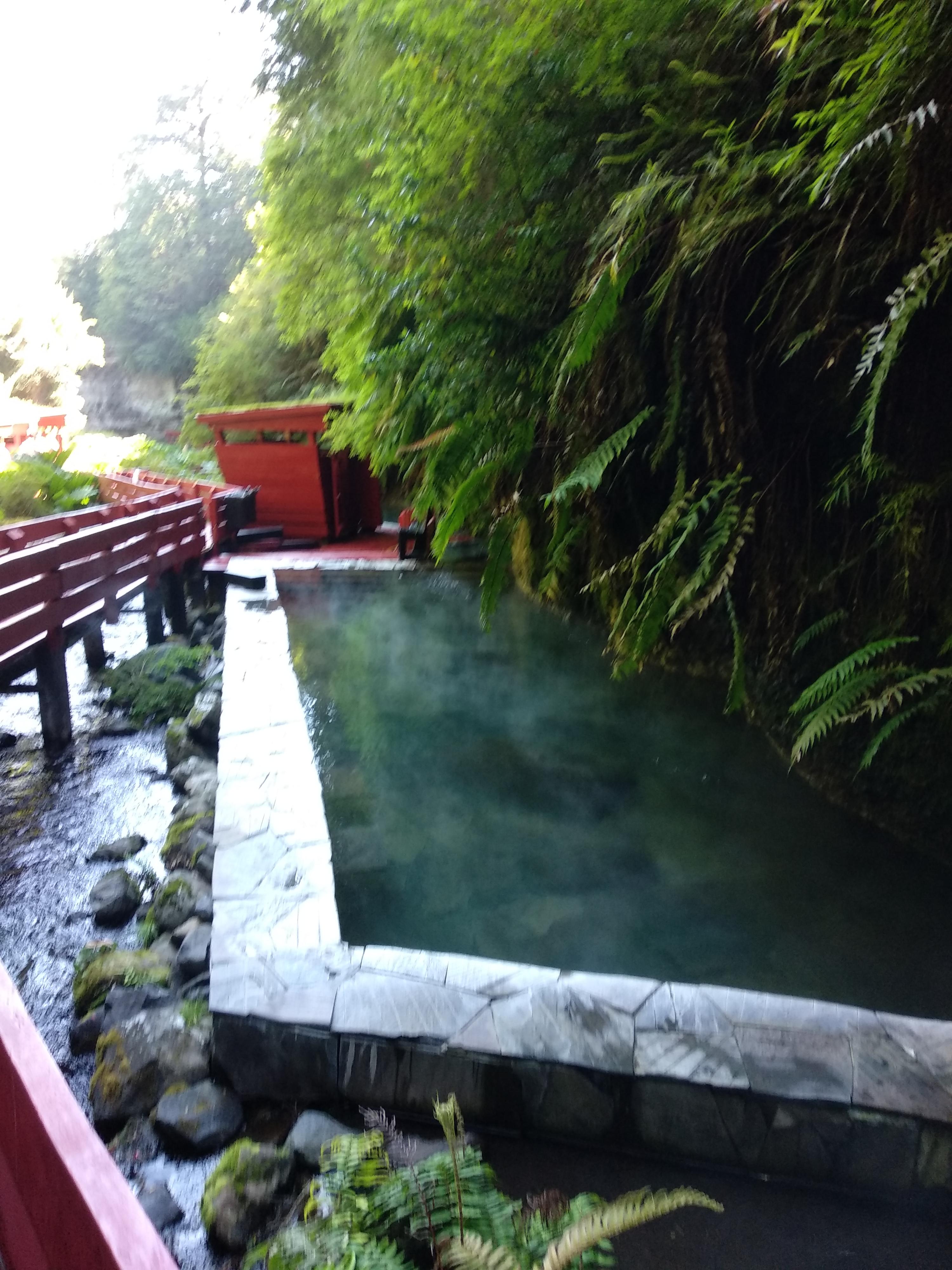 입구에서 여권을 맡기고 키와 사용할 수건을 받는다. 데크를 따라 올라가면 레스토랑이 있는데 이 곳에서 간단한 식사를 할 수 있다. 생각보다 그렇게 비싸지 않은 가격이다. 그리고 밖으로 나가면 빨간색 나무로 만들어진 데크를 따라 양 옆으로 다양한 온도의 온천이 있다.