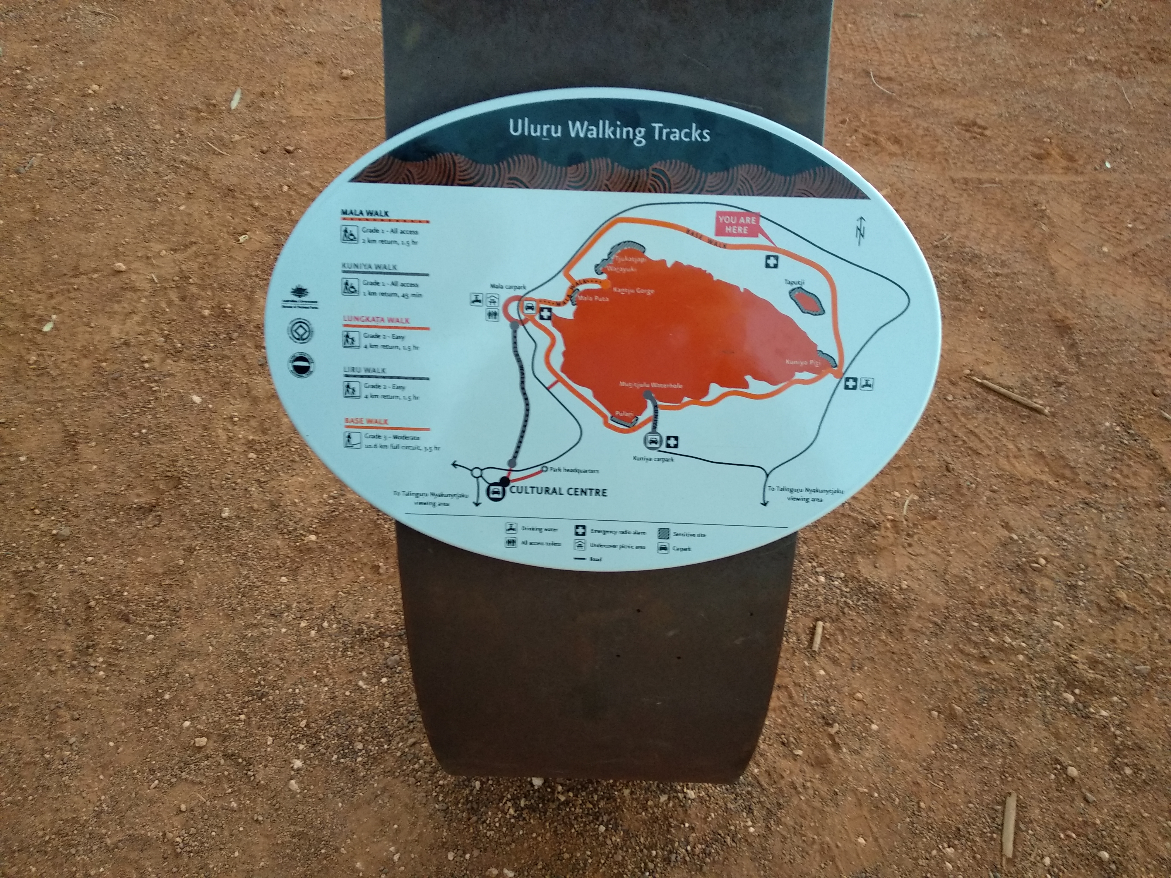 우리가 울룰루에 갔을 때까지만 해도 정상으로 올라가는건 문제가 없었지만 당일 바람이 많이 불어서 안전상 위험하다고 하여 울룰루 위로 올라갈 수 없었다.