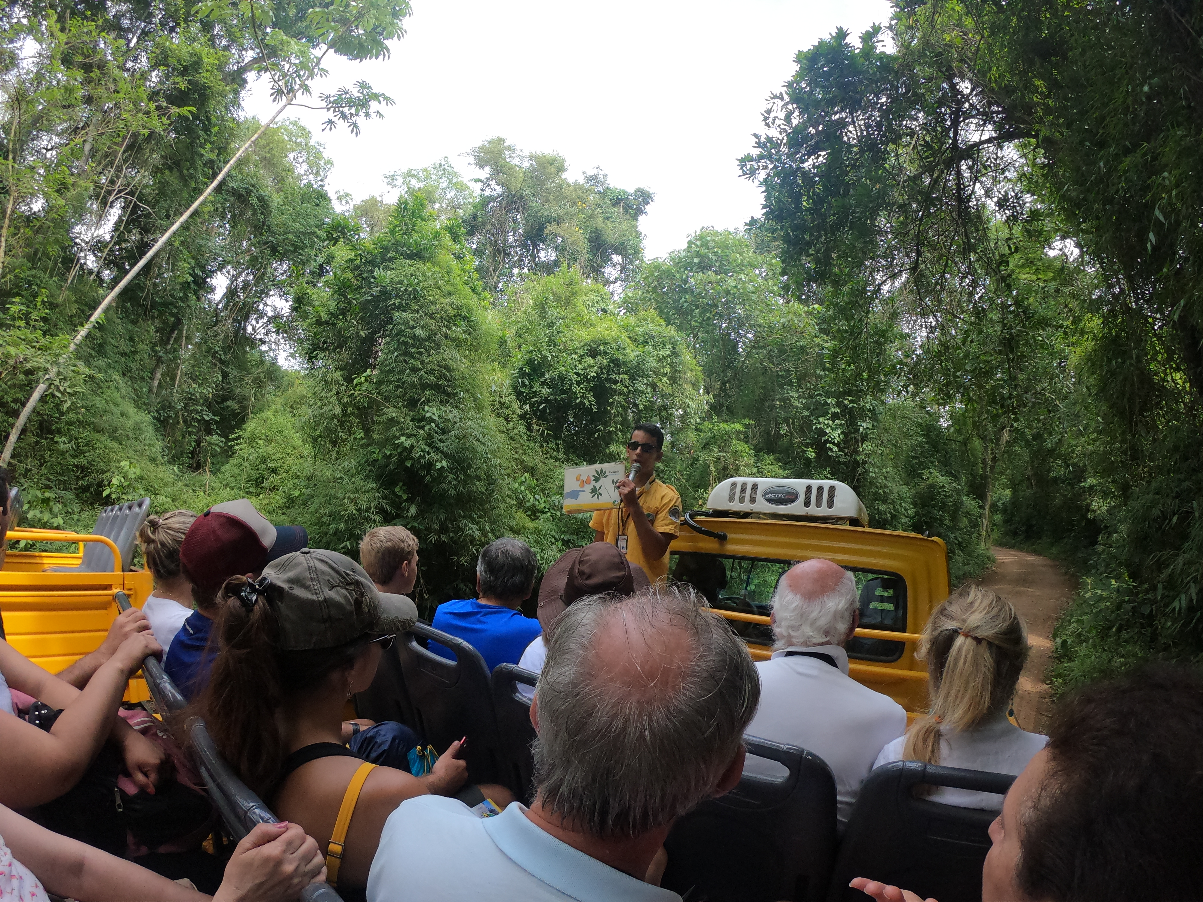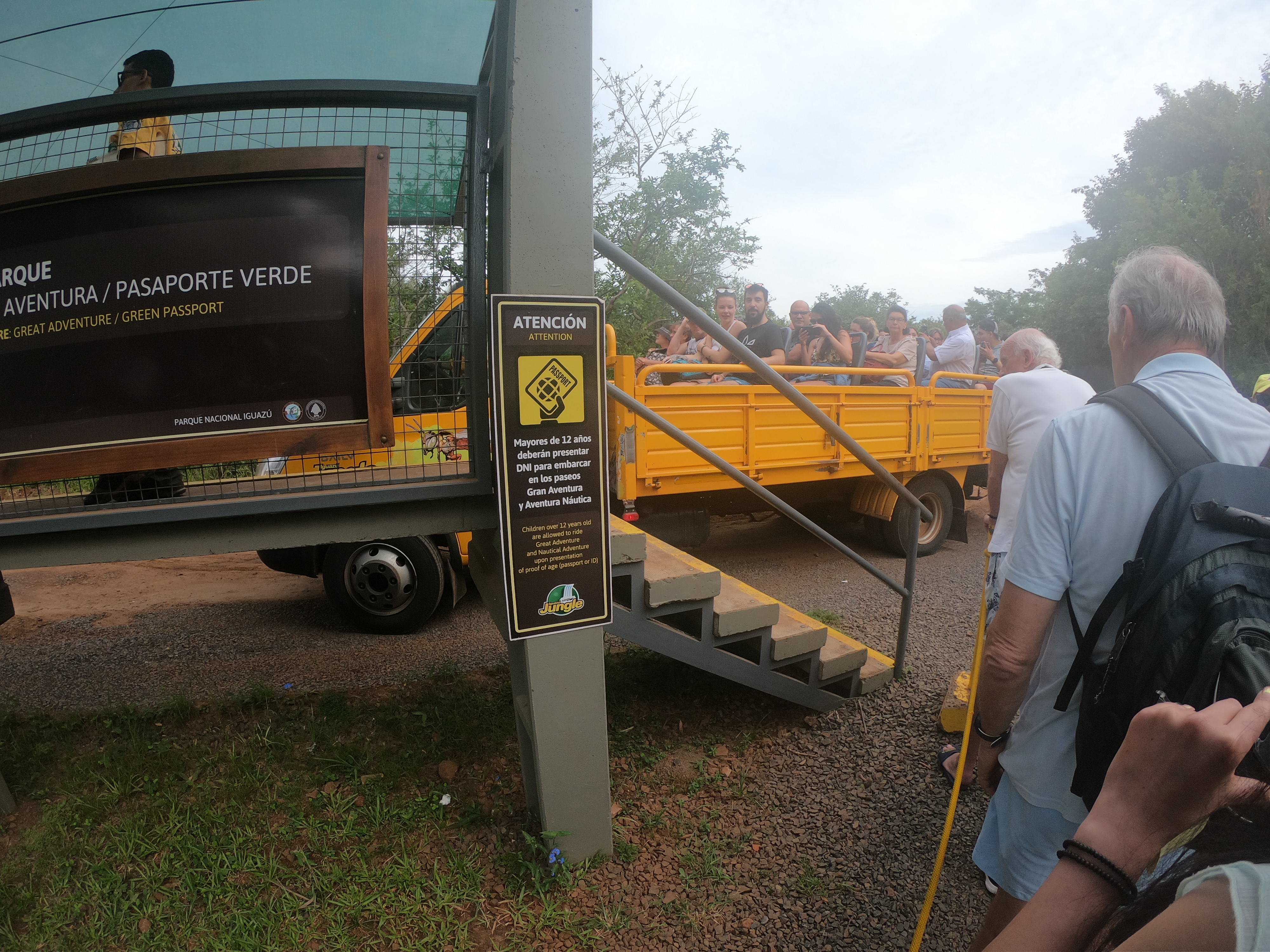 보트투어는 아르헨티나 이과수 국립공원에 입장하시면 조금만 걸어가면 바로 정글버스를 타는 곳으로 갈 수 있습니다. 사람들이 줄을 서 있는데 순서대로 정글트럭이 오면 이걸 타고 보트 선착장으로 이동하게 되는 겁니다. 버스는 꽤 자주 오기 떄문에 오래기다리지 않아도 됩니다. 가는 길 15분 정도 투어가이드가 이과수 국립공원에 대한 간략한 설명을 해줍니다. 스페인어 영어 포르투갈어를 구사합니다.